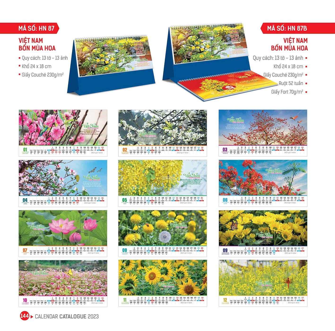 Mẫu Lịch Để Bàn Việt Nam Bốn Mùa Hoa
